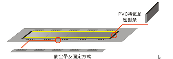 在車輛進入地磅秤臺兩端采用PVC特氟龍密封條完全密封,特氟龍材質具有穩定的溫度性能,高低溫變形量極小,較高的抗耐磨性,同時大大減少秤體前后晃動對基礎的沖擊力,提高稱重穩定性。